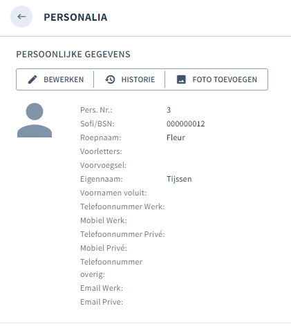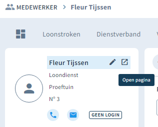 - ga in het blokje met de personeelsgegevens met je muis op de naam van de werknemer staan. Je ziet dan rechts achter de naam een blokje met een pijltje komen.