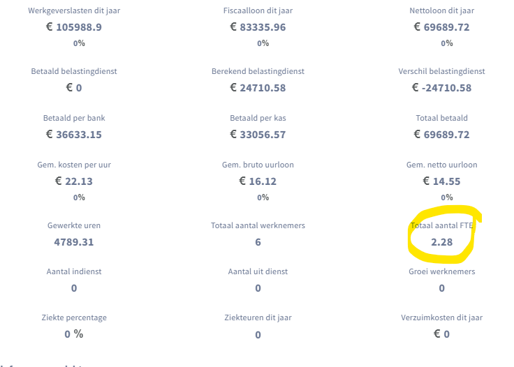 Bij Tijssen cs salarisadministraties is het makkelijk om te zien wat het aantal FTE was in het voorgaande jaar.