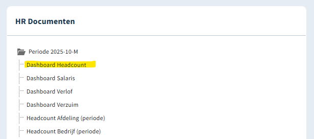 Klik in het blok HR Documemten op Dashboard Headcount: