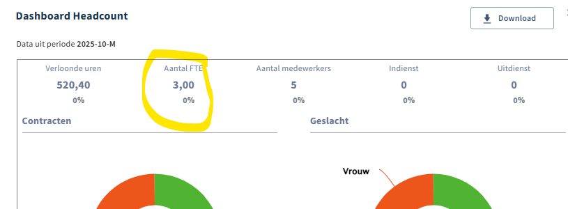 Het aantal FTE van deze maand is nu zichtbaar.