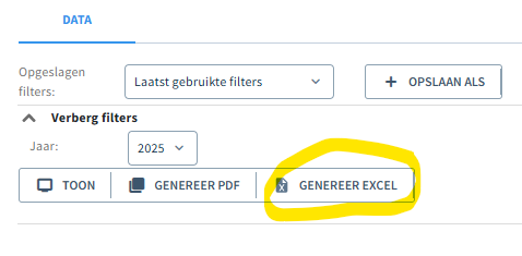 klik op genereer excel: