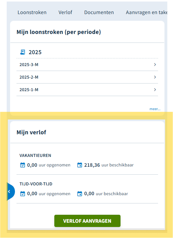 Als je bent ingelogd, zie je het blok "Mijn verlof":