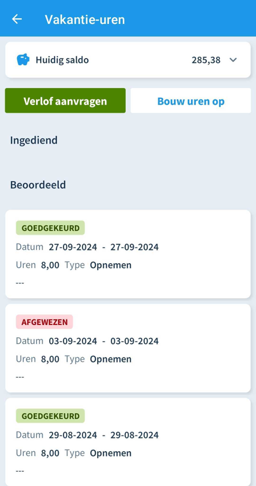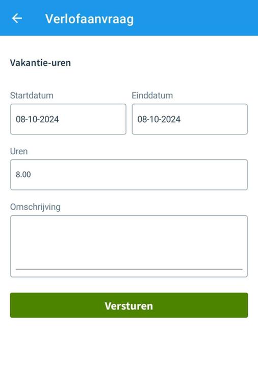 Het is uiteraard ook mogelijk om via de app verlof aan te vragen.