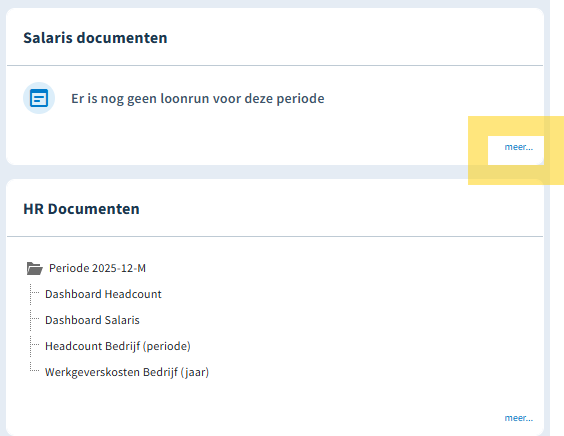 Klik dan in het blok van de salarisdocumenten rechts onder op meer...